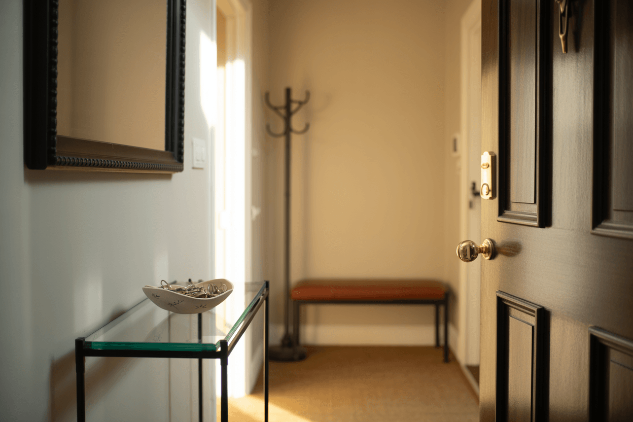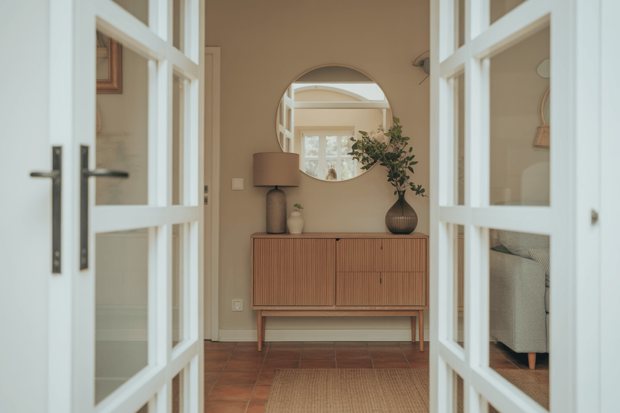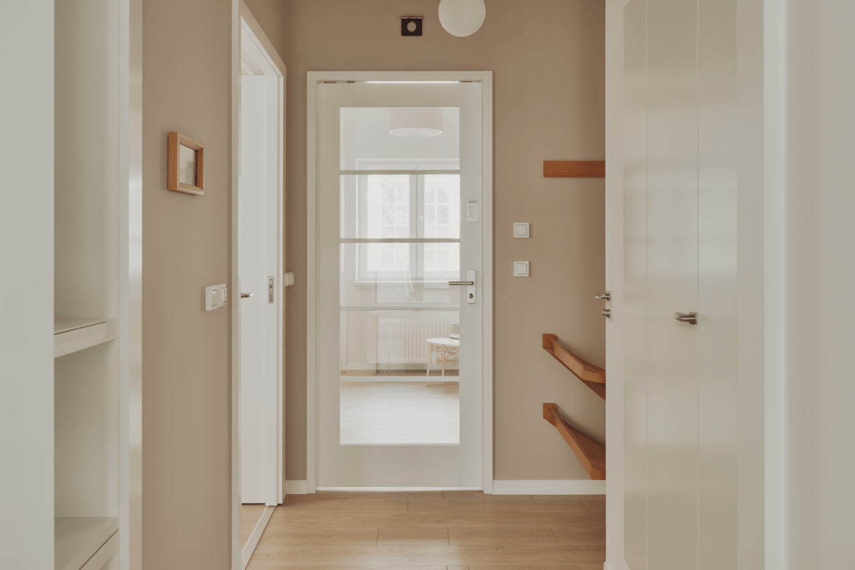 Wenn möglich, setze auf Türen mit Glas-Einsätzen oder Milchglas. Sie lassen Tageslicht von angrenzenden Räumen hereinfließen, ohne die Privatsphäre zu stören. Auch ein kleiner Glaseinsatz in der Haustür kann Wunder wirken.