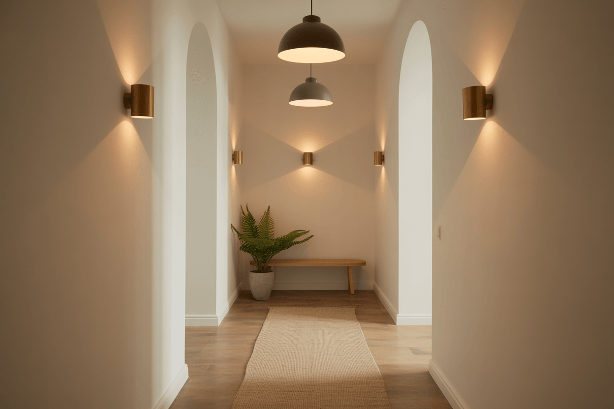 Viele Flure haben kein Fenster, umso wichtiger ist die künstliche Beleuchtung. Plane mehrere Lichtquellen statt einer zentralen Lampe: