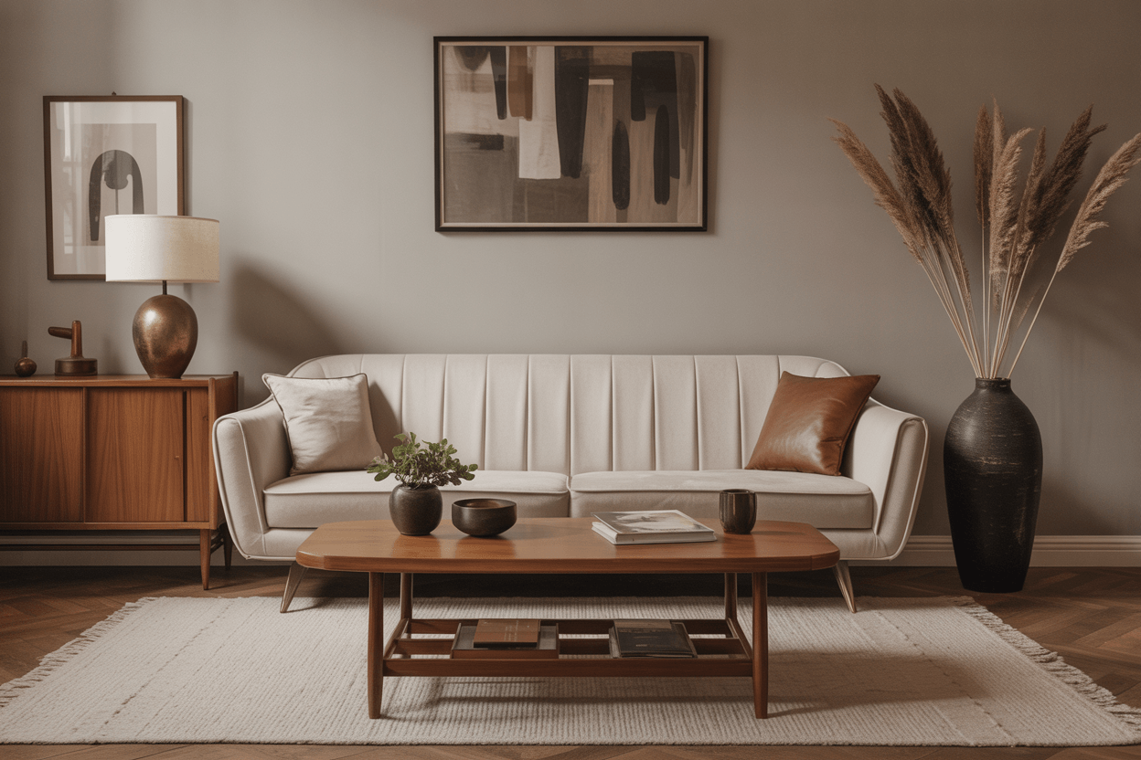Mid-Century Sofas zeichnen sich durch klare, aber organische Linien und Holzbeine aus. In neutralen Tönen lassen sie sich problemlos in Räume mit Vintage-Charme oder Retro-Elementen integrieren.